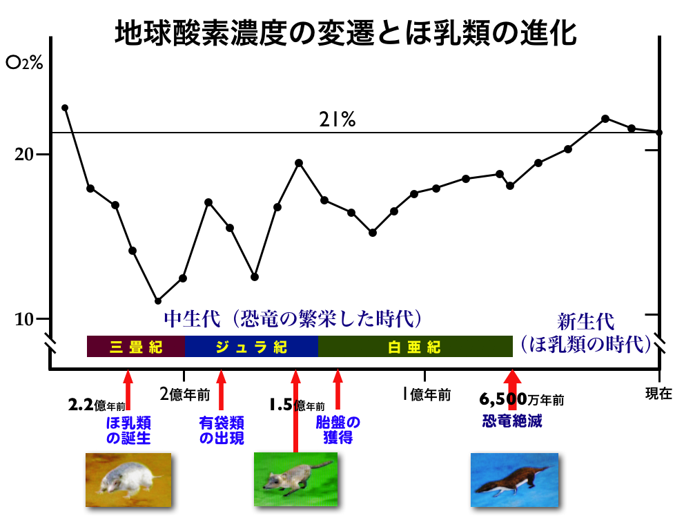 酸素濃度が極端に低いペルム期後半~三畳紀を生き抜いてることから効率よく酸素を取り込むことができたと