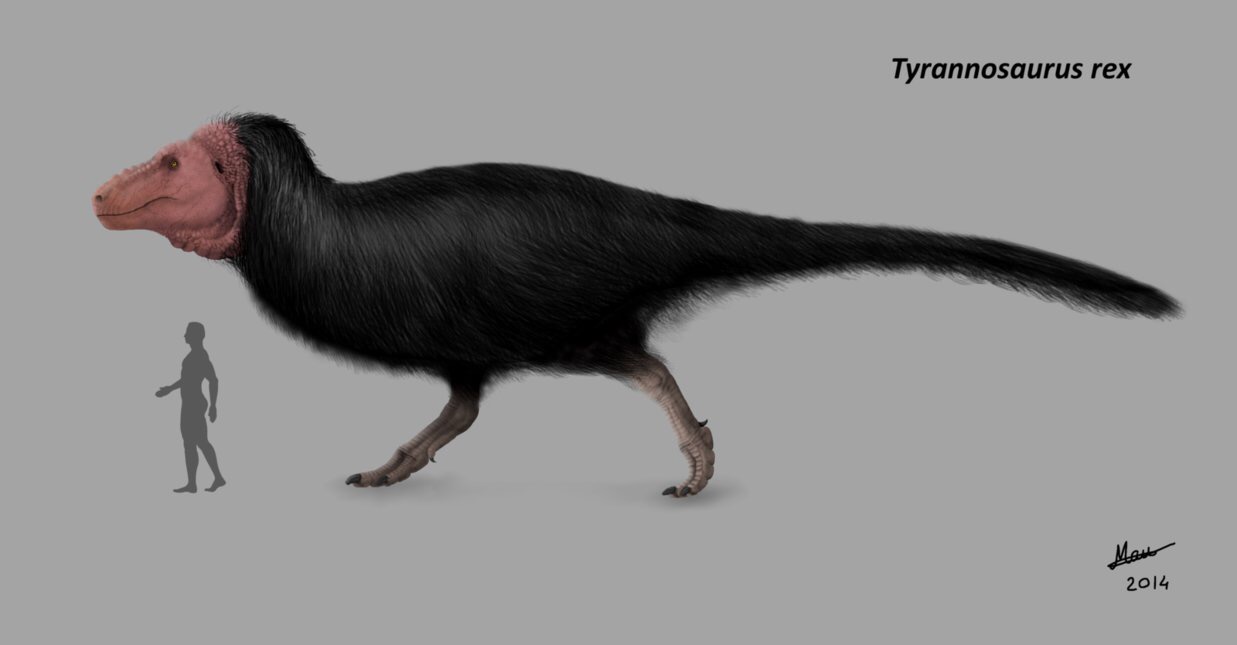 ティラノサウルスも化石のフォルムよりもっとモコモコしてたのか…ひよこみたいに