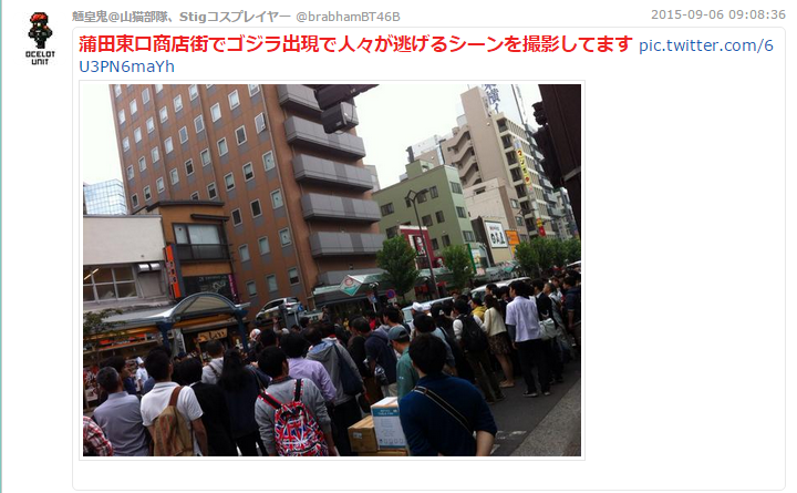 ゴジラから群衆が逃げるところの撮影やってたみたいだな